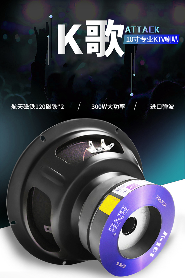 BNB大功率10寸音箱中低音喇叭KTV卡包清吧慢摇吧音响 双磁喇叭高端家用K歌唱会议音响喇叭扬声器 K-101(10寸大功率喇叭)
