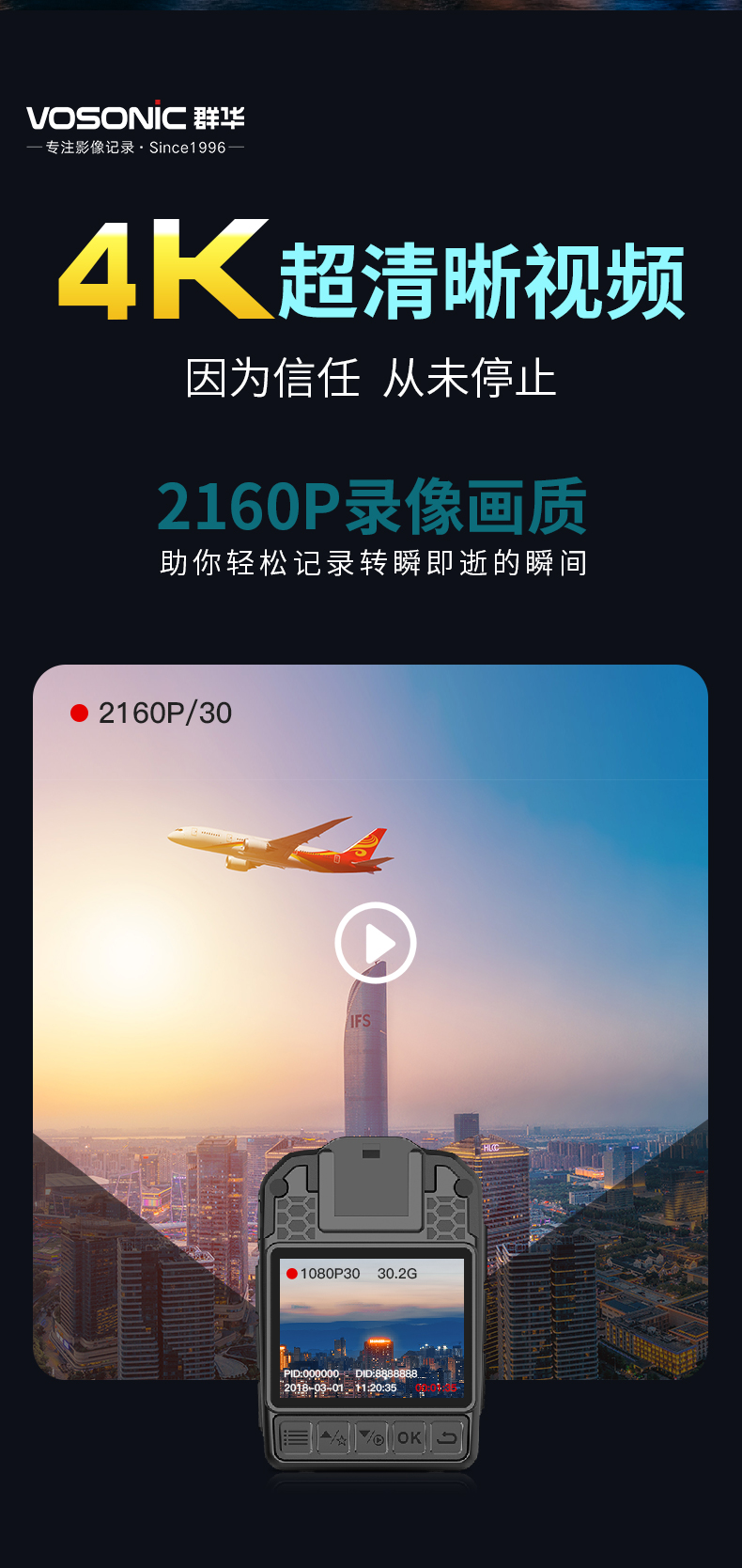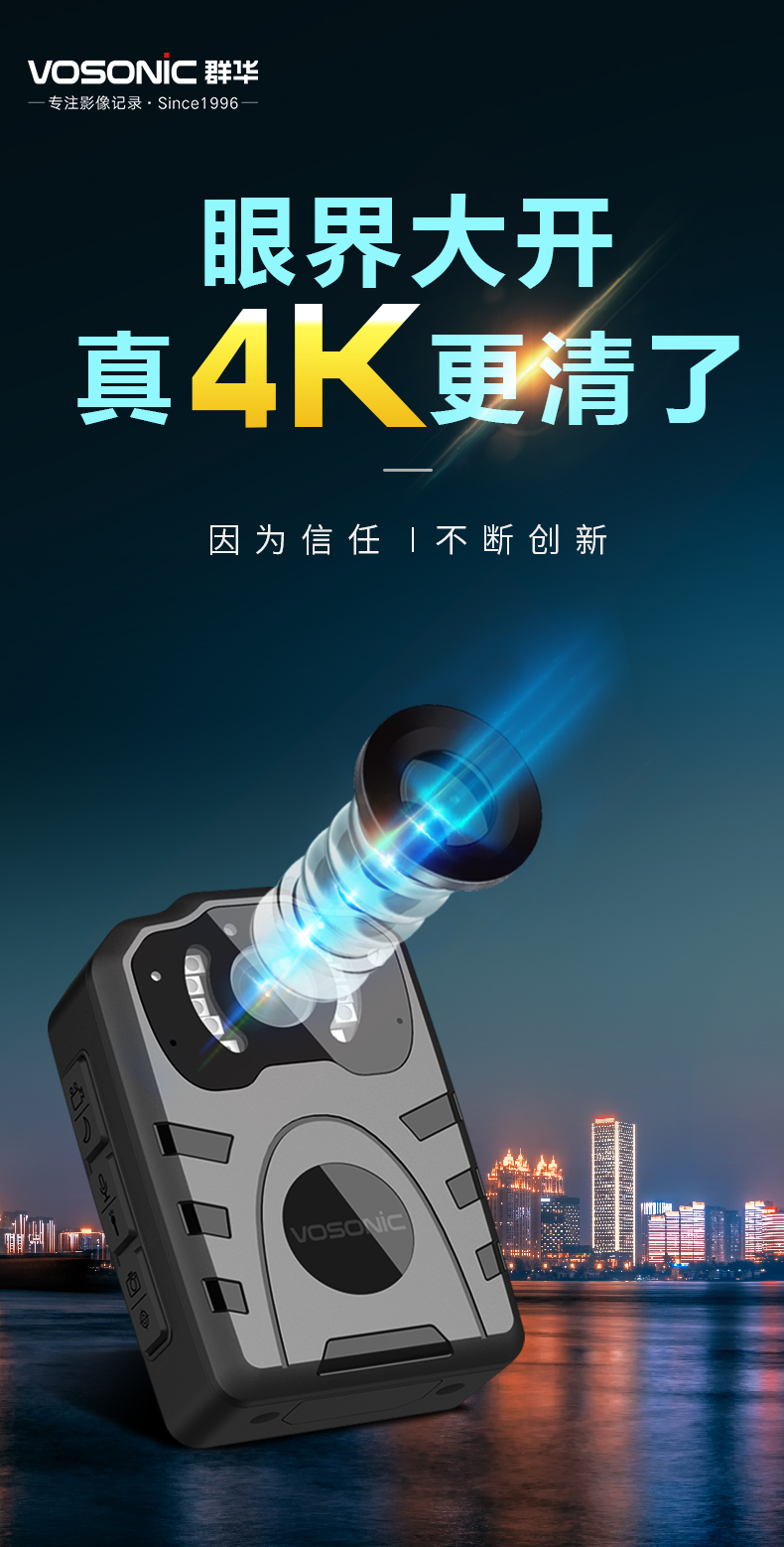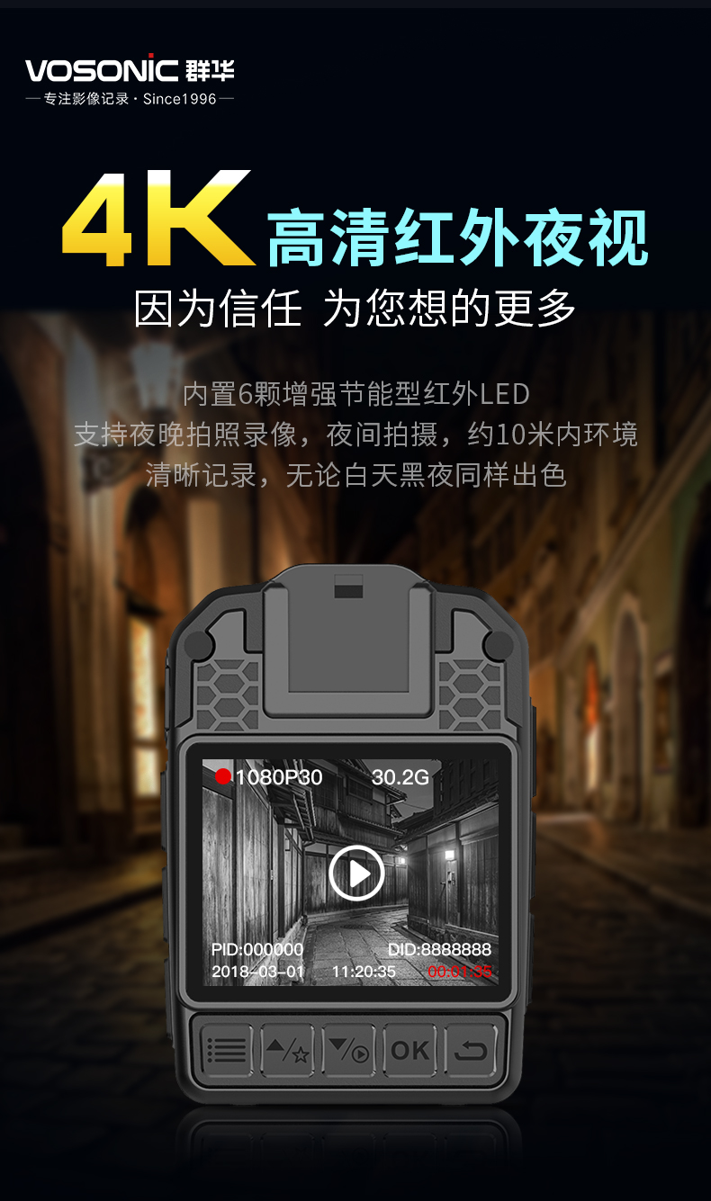 群华(VOSONIC)D2 64G 4K执法记录仪2160p高清5400万像素红外夜视15小时持续录像