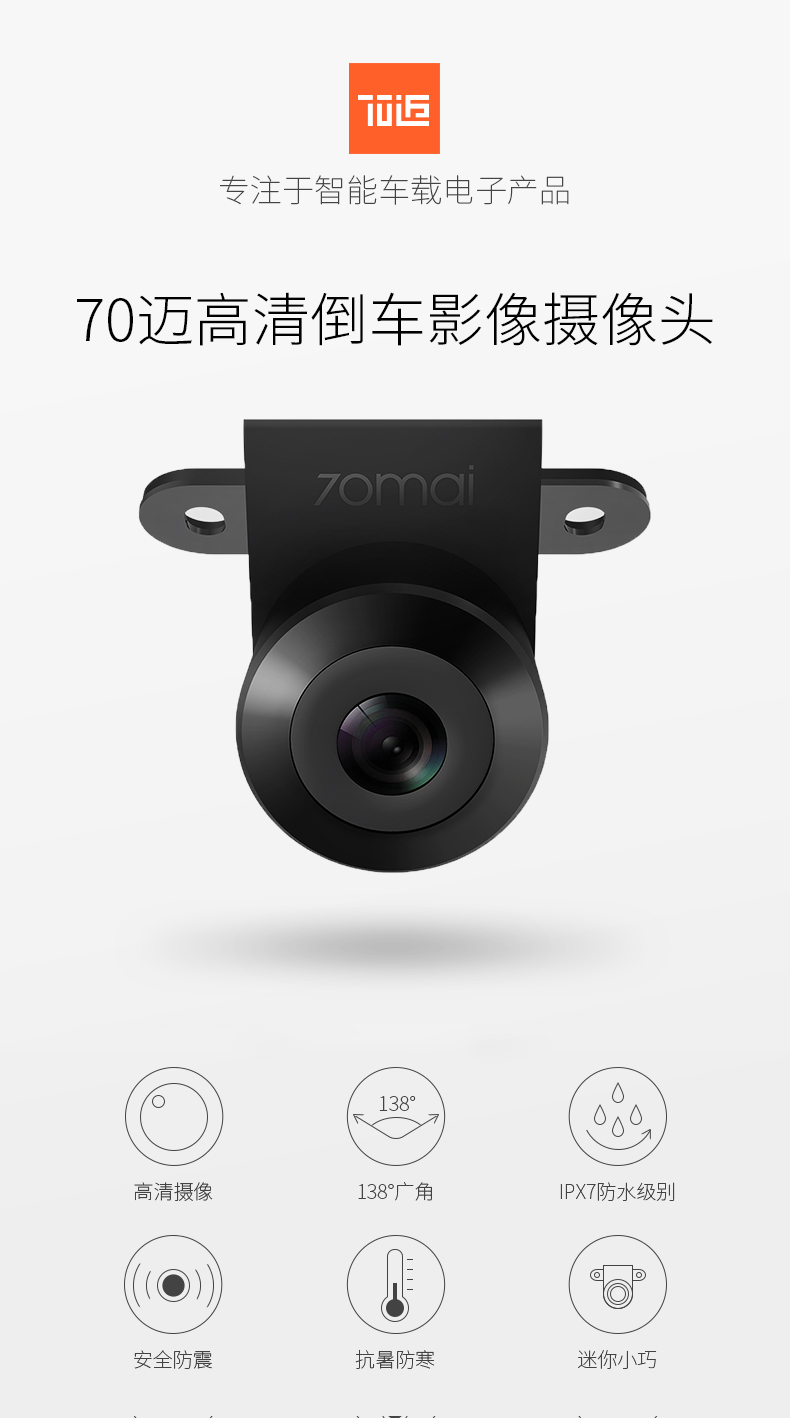 70迈行车记录仪高清倒车影像摄像头 后置专用 安全耐高温防震 IP67级防水(70迈产品专用)