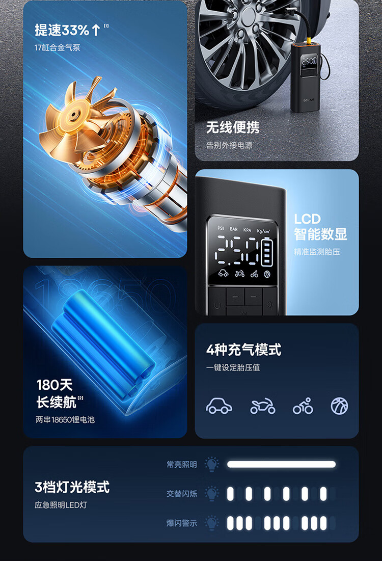倍思(Baseus)车载充气泵 汽车轮胎打气泵打气筒 自行车电动车便携充气宝