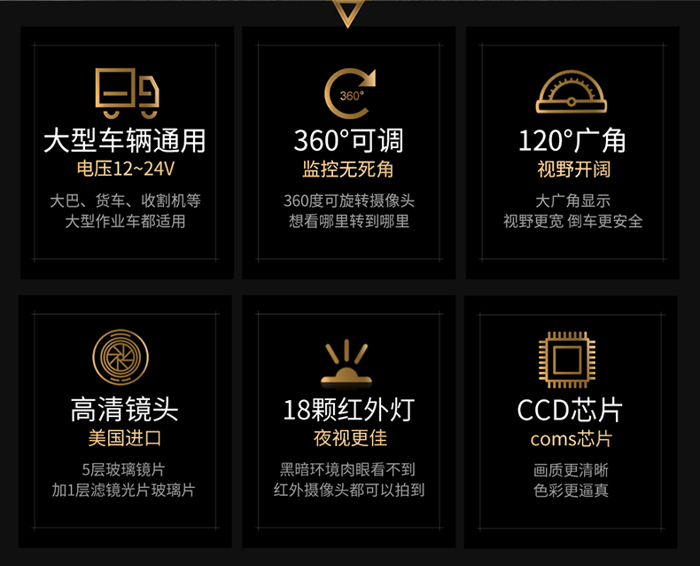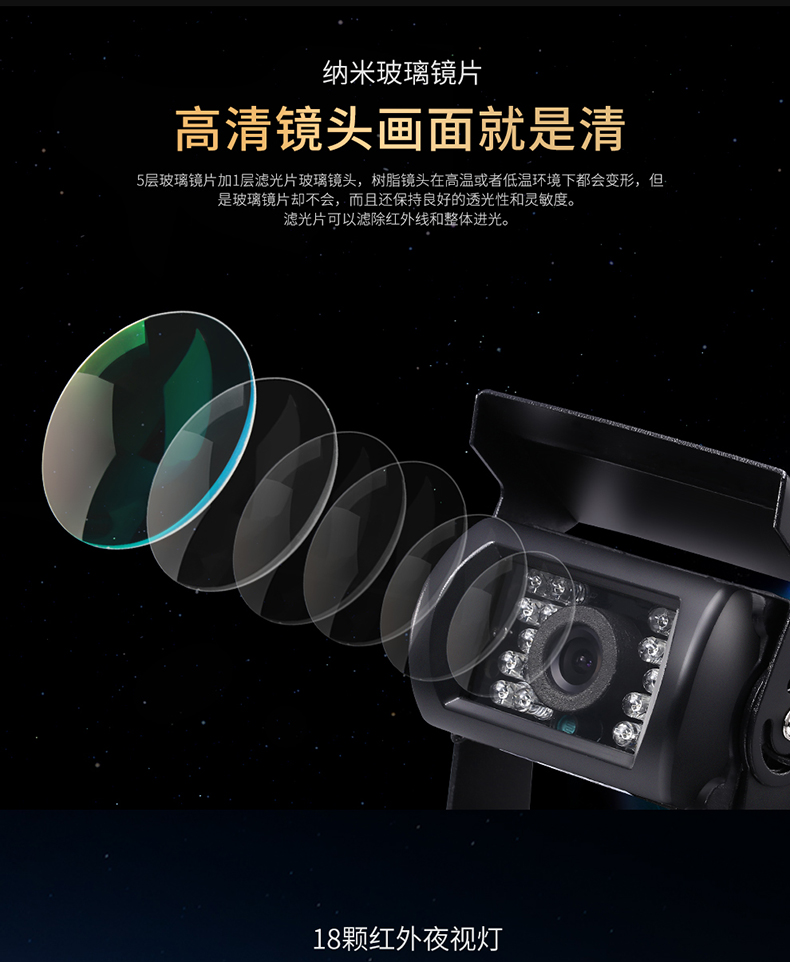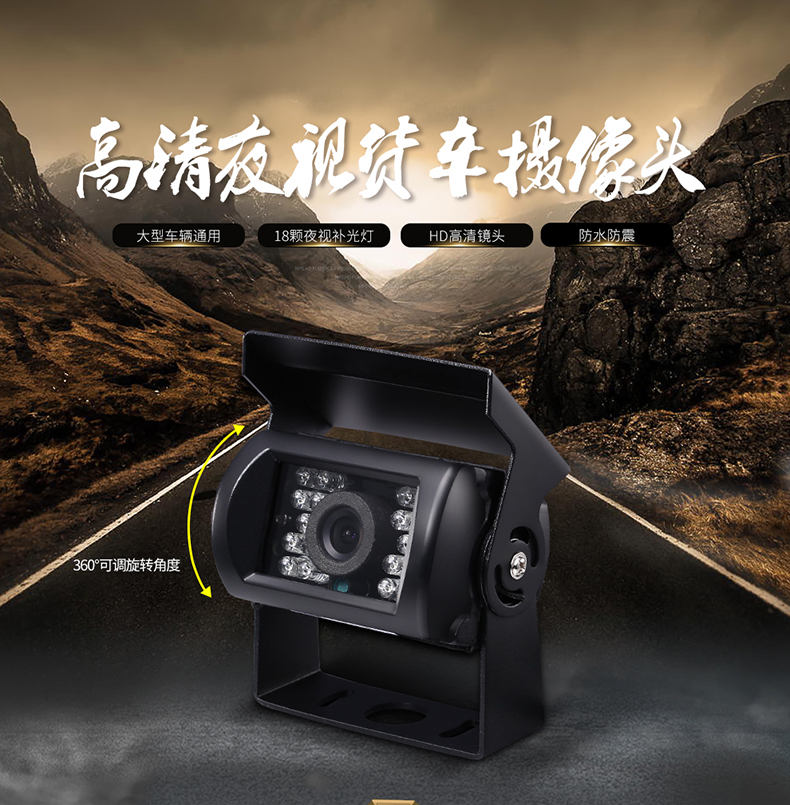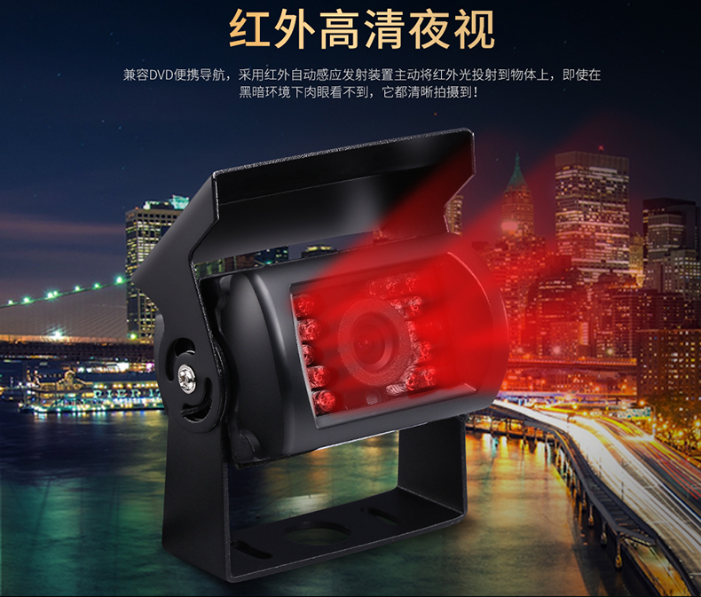 倒车摄像头汽车通用后视高清大货车12v24v夜视小收割机红外后影像摄影头 大巴航空头红外